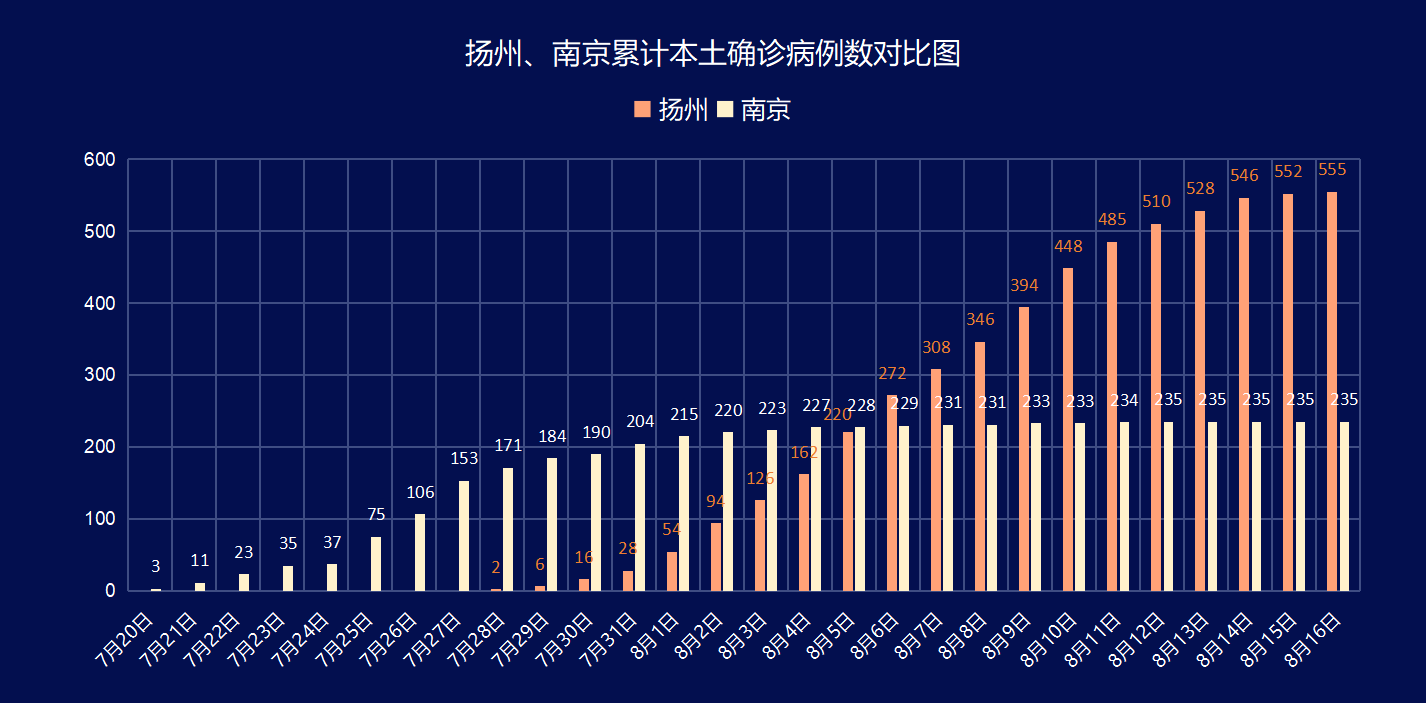 截至8月16日24时,扬州累计报告新冠确诊病例555例,比南京的两倍还多,占江苏全省近7成。在棋牌室感染者“暴雷”后,核酸检测点发生超级传播、两家医院工作人员确诊、社区散发病例半月不绝……期间,扬州到底发生了什么?