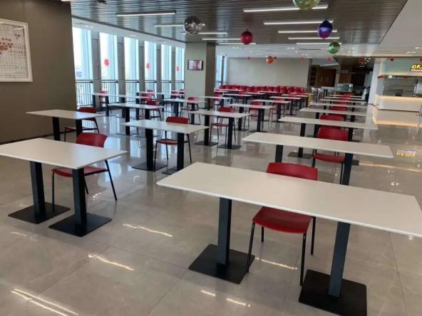 (四)快餐经营场所适当减少客容量,四周的餐桌靠墙靠窗摆放,中央的餐桌两桌对摆并在中间增设隔断进行物理分隔,实行一桌配一椅,避免顾客面对面就餐。