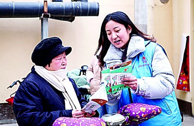 河北省邯郸市磁县御景社区,社区工作者开展中医药知识宣传。赵飞飞摄/光明图片