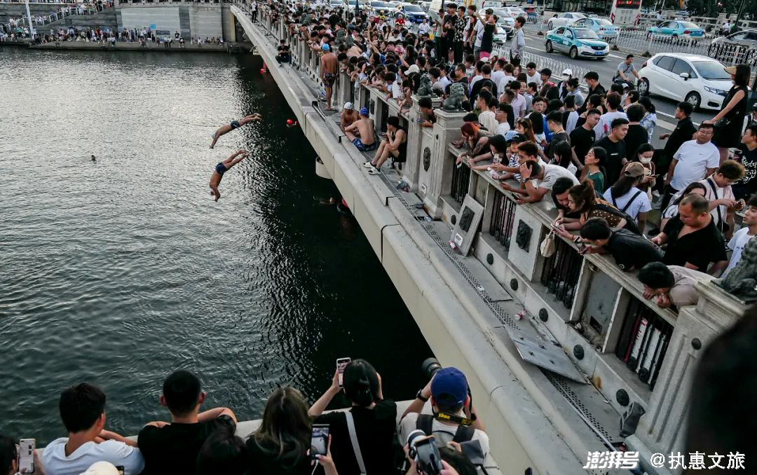 十年前,baibai们就在狮子林桥跳水了。近年,跳水baibai们的乐观幽默,让向往闲暇、追求松弛感的年轻人产生了共鸣。通过社交媒体,个体的自娱自乐变成了爆火网络的公共事件。