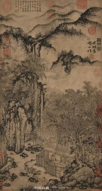 中国艺术珍品方面,收藏市场则主要集中在中国内地与香港拍场,仅有8件拍品超亿元人民币成交。其中,元代王蒙《涤砚图》以2.875亿元成交,位居第18位。此件王蒙《涤砚图》源自北美重要私人珍藏,被董其昌誉为“奇品”,是民间所见唯一可以流通的《石渠宝笈》著录王蒙立幅珍品。