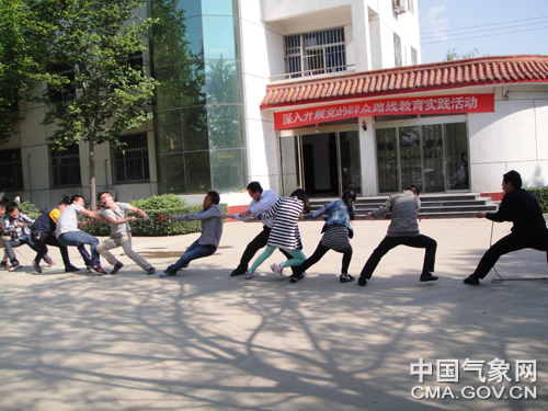 中国气象报通讯员周丹报道 为庆祝五四青年节,促进广大干部职工相互交流,激发工作热情,5月4日,河北省涿州市气象局组织开展了拔河、跳绳、羽毛球比赛。比赛中,大家精神饱满,踊跃参与,热情高涨,比能力、比配合,展现出涿州气象人顽强拼搏的优秀品质。一阵阵“加油!”的助威声,让现场充满了欢乐的节日气氛。活动不仅增强了大家的集体荣誉感和团结协作的意识,也增进了职工间的友谊。