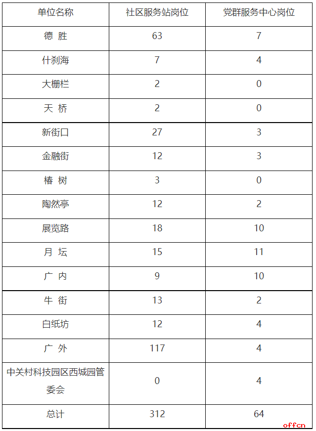 街道社区服务站岗位、党群服务中心专职党务工作者岗位。