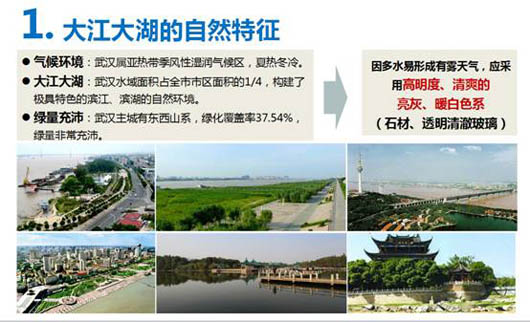 2015年8月初,武汉市国土规划局明确了“明快清爽,大气灵秀”的城市色彩形象定位,正式确定了武汉以“暖白灰橙”为代表的主色调。