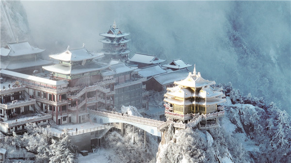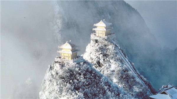 寒冬时节,地处豫西腹地的老君山主峰,在一场降雪后,峰峦沟壑间白雪漫山,云雾缭绕,绮丽无比。雪雾在层层山峦间升腾,时隐时现。玉树琼花、白雪云海浑然一色,形成了一幅壮观的天然水墨画,置身其中好似误入仙境。