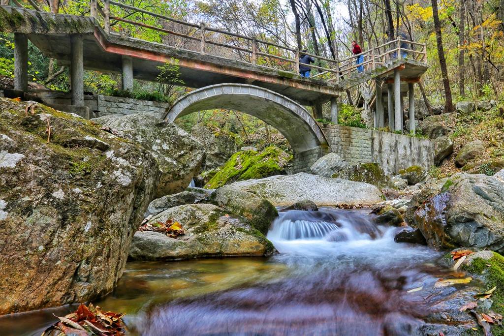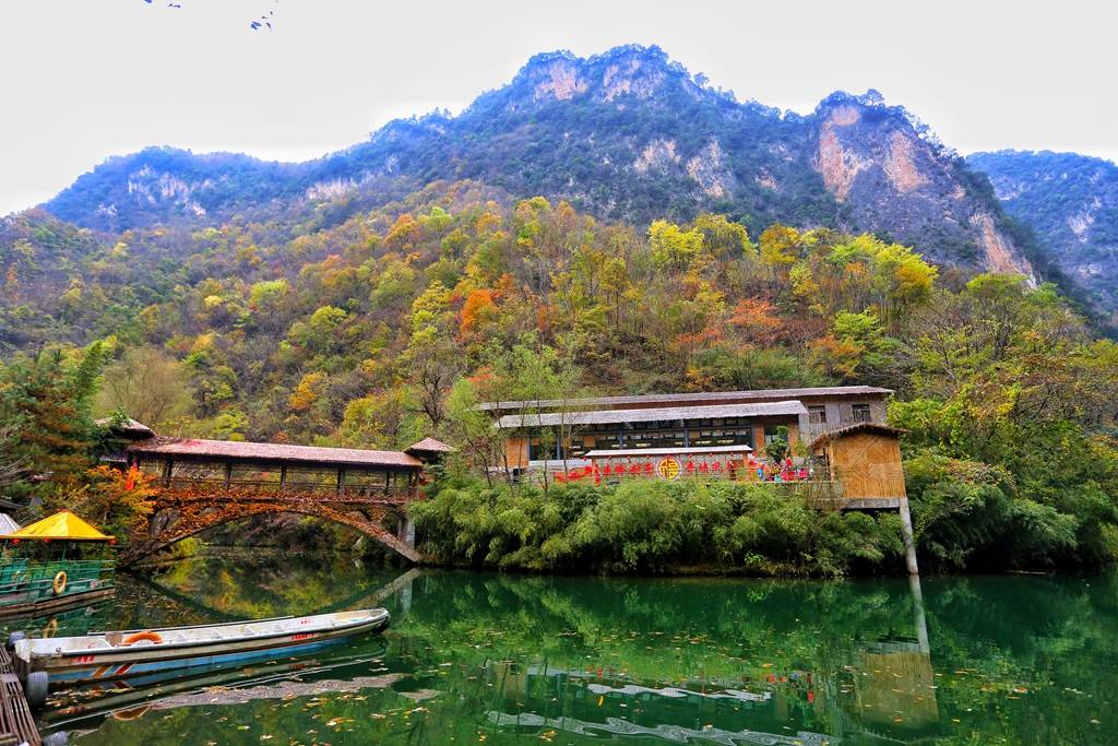 碧云天,黄叶地。黄色,一直以来都是秋天最饱满温暖的颜色。当下的漫川关古镇,树叶渐黄,草木间一抹抹黄色,明亮在亭台楼桥畔,为深秋的古镇增添亮色。