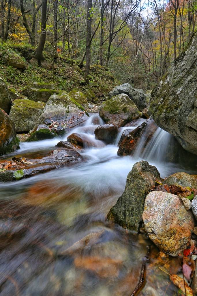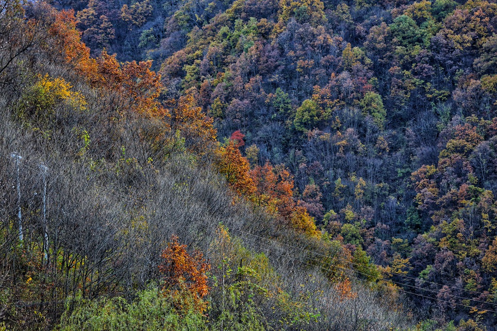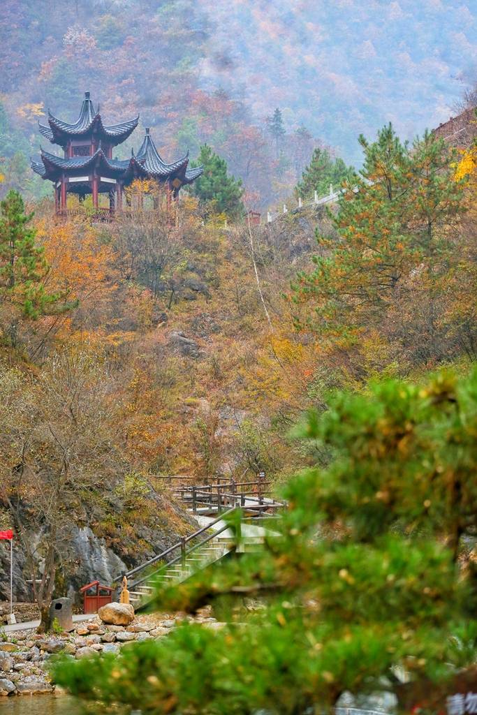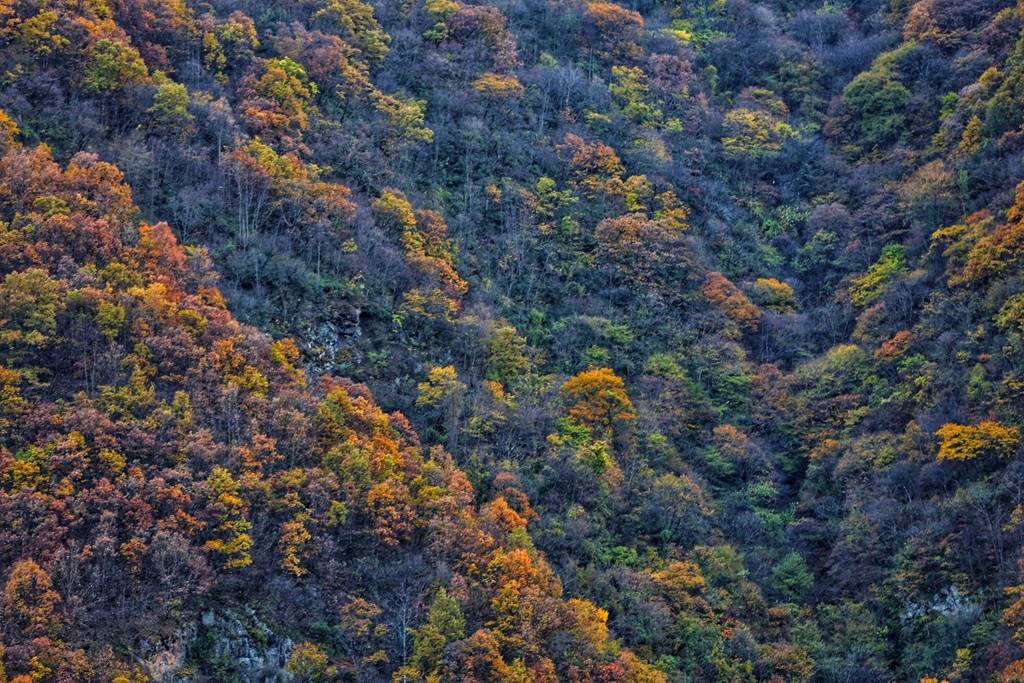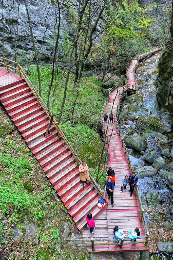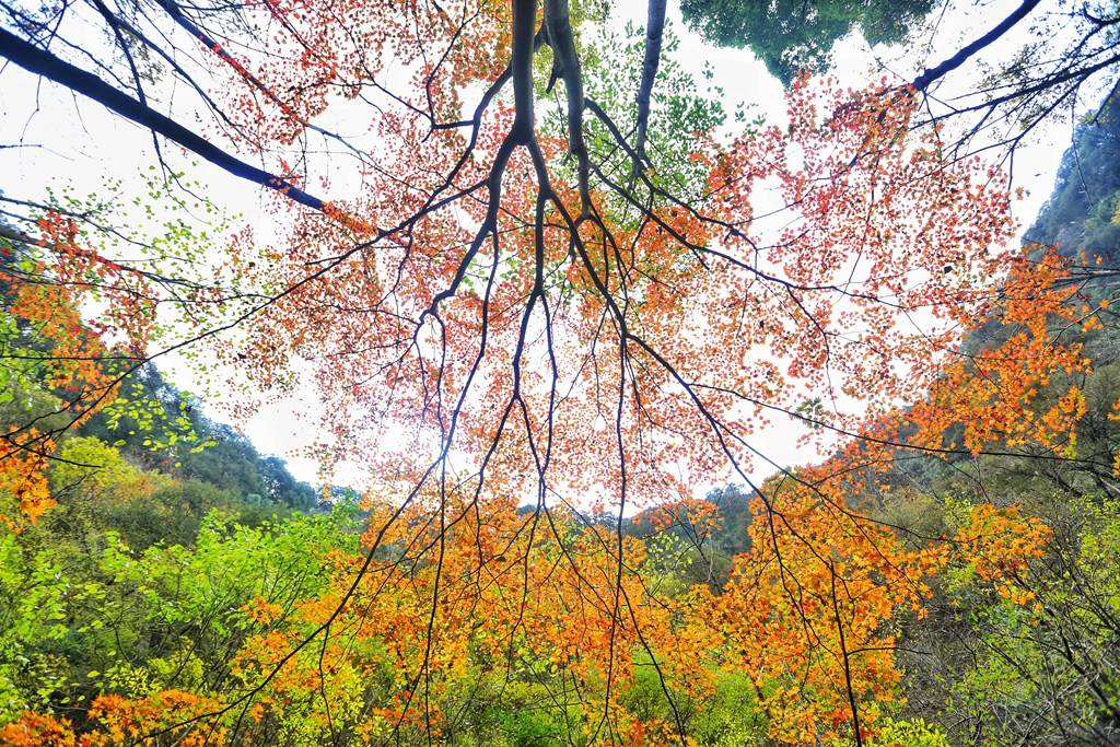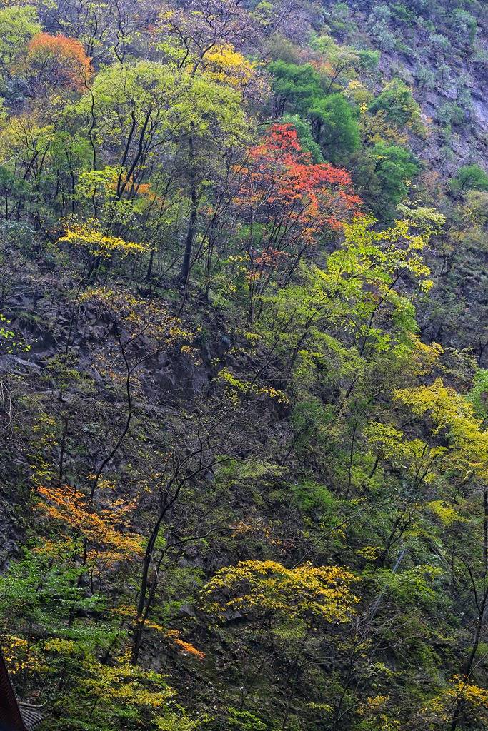 金秋时节,层林尽染,烈焰红色,将金丝峡渲染成一个多姿多彩的缤纷世界。