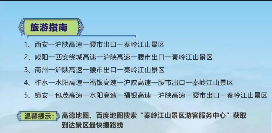 自驾提示:西安--沪陕高速(G40)--金丝峡站出口--金丝峡景区