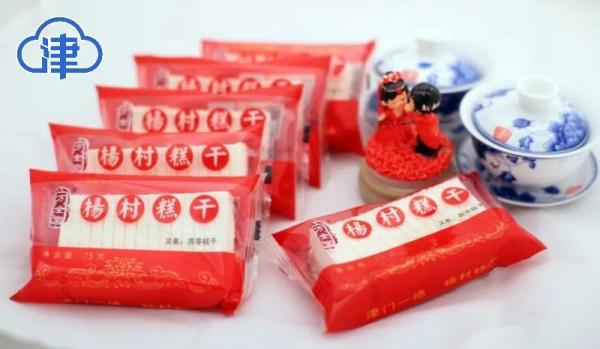 “说起杨村糕干的历史,当追溯到明永乐年间,创始人杜金、杜银兄弟从浙江绍兴搬迁至杨村,他们把米碾成面,和以白糖蒸成糕干,经营起糕干铺并逐渐发展壮大。后来,清康熙皇帝南巡驻跸杨村,品尝后亲口嘉谕为贡品,许以杜氏专卖专利;乾隆皇帝御笔亲题‘妇孺恩物’四个大字。”武清区相关负责人介绍说,经过多年传承发展,杨村糕干的选料更为严谨,制作过程在基本保持原工艺的基础上更加考究,采用优质大米、白糖为原料,经过浸泡、碾压、箩筛、搅拌、发酵、成形、加热等十余道程序加工而成,因其洁白细腻、松软可口,具有健脾益胃的作用,与中药茯苓有异曲同工之效,因此亦称杨村茯苓糕干。2007年,杨村糕干制作工艺被纳入第一批市级非物质文化遗产名录。