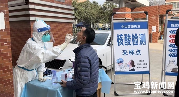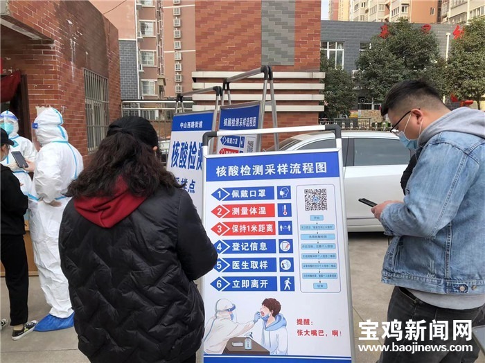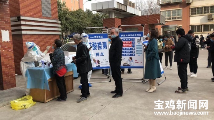 (宝鸡新闻网 罗君)“请保持一米间距,打开手机注册个人信息……”3月9日上午,记者在金台区中山西路街道长青社区金利苑小区核酸检测点看到,10名佩戴红袖章的志愿者,正积极引导居民有序进行核酸检测。