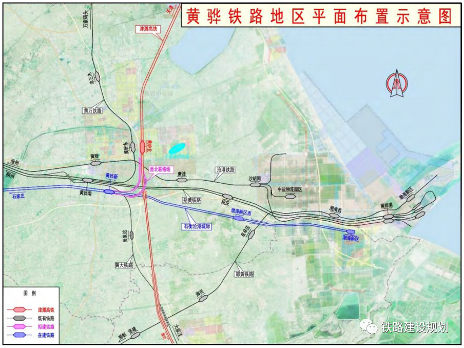 地区内现状无客运车站。研究年度有天津至潍坊高速铁路自地区北部引入,在黄骅地区新建黄骅北站。