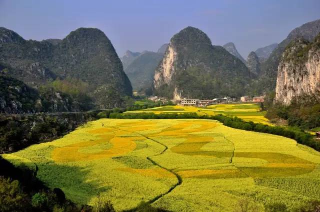 天下田园何其多,然而,所谓田园风光者,多半是有田无山或有山无田,山青田不秀或田秀山不青,山环水不绕或水绕山不环。在兴义,纳灰村的农田与万峰林的山峦,田与山如此无瑕地组合,河与村这般美妙的统一,仿佛置身于巨大的山水盆景之中。