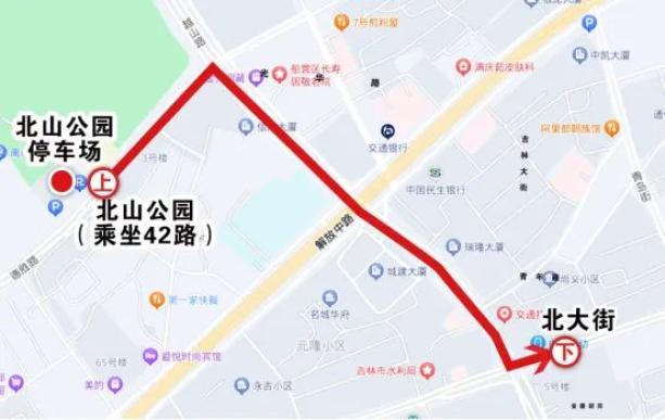 (2)北山公园停车场,在北山公园站乘坐42线公交车,北大街站下车。