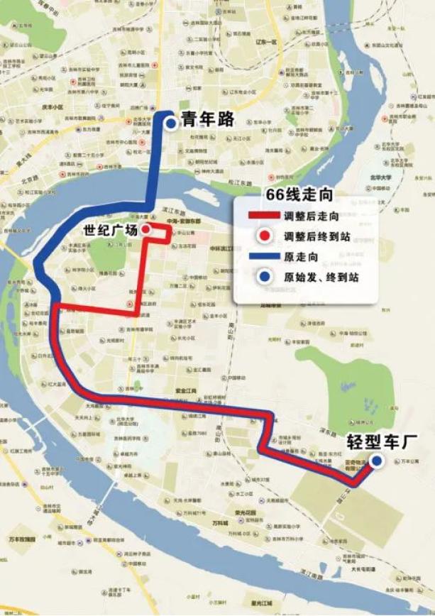 66线临时绕行、终到站回缩,由深圳街绕行恒山西路、吉林大街、玉山路、长江街、华山路、吉林大街,终到站回缩至世纪广场。