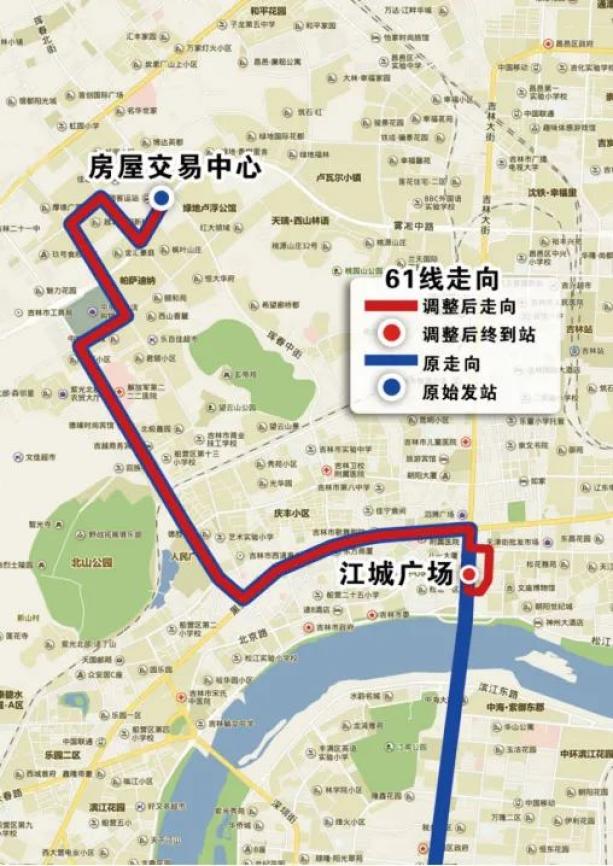 61线终到站回缩,由吉林大街绕行青年路、重庆街、安康胡同、吉林大街,终到江城广场。