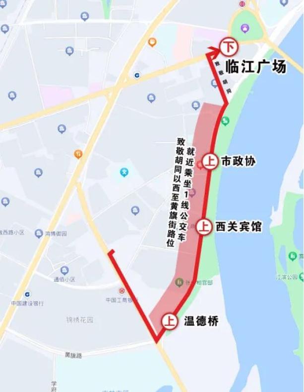 (9)致敬胡同以西至黄旗街泊位,就近乘坐1线公交车,临江广场站下车。