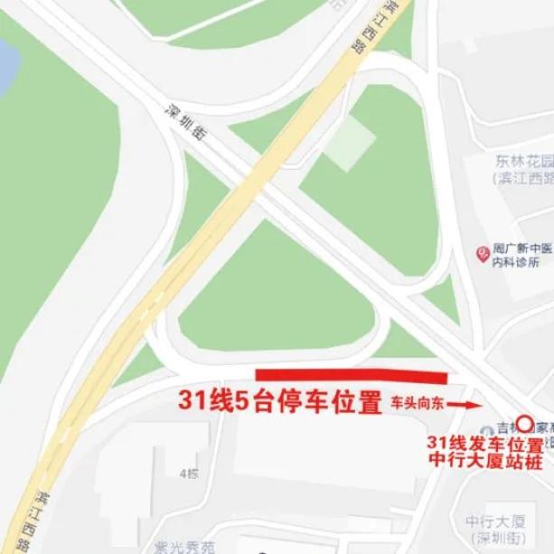 (8)解放大路以北至桃源路泊位,就近乘坐30线、40线、130线、140线公交车,江城广场站下车。