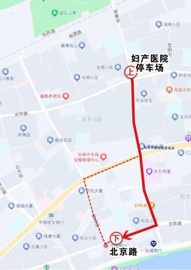 (3)妇产医院停车场摆渡线:由妇产医院停车场始发,途经珲春街,终到北京路。