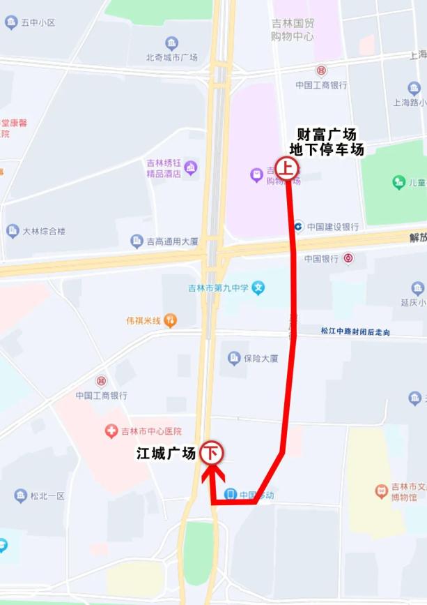 朝阳大厦、物华商场、吉林剧场地下停车场摆渡线