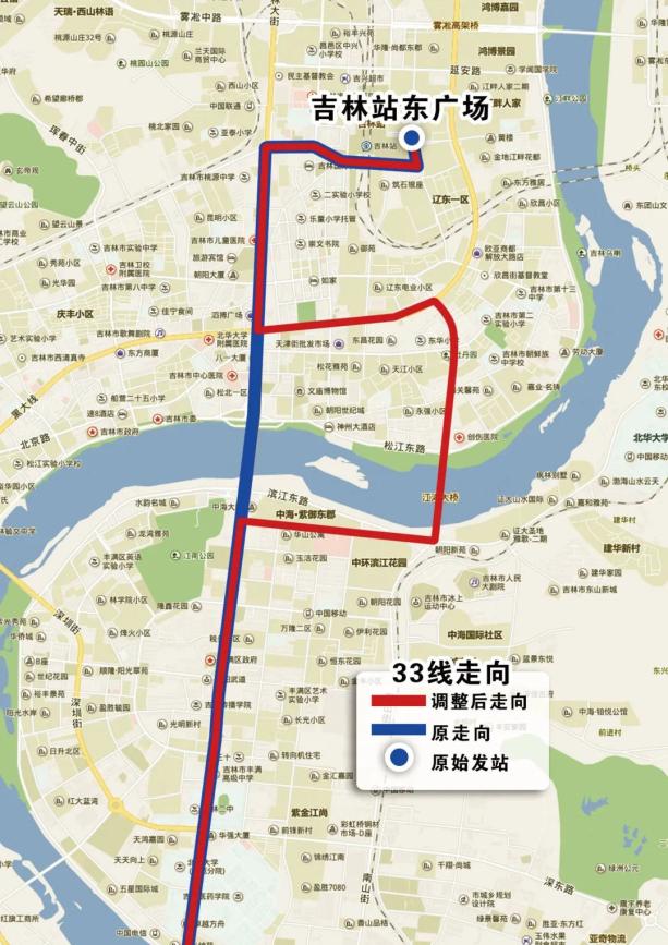 33线临时绕行,由吉林大街绕行解放东路、东昌街、江湾桥、华山路、吉林大街恢复原走向。