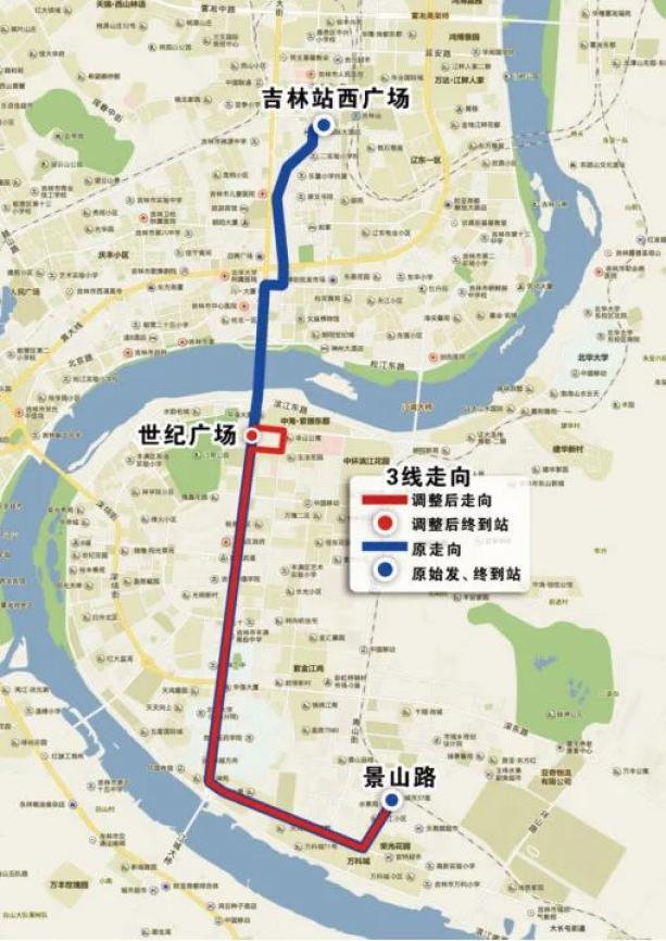 3线终到站回缩,由吉林大街绕行玉山路、长江街、华山路、吉林大街,终到世纪广场。