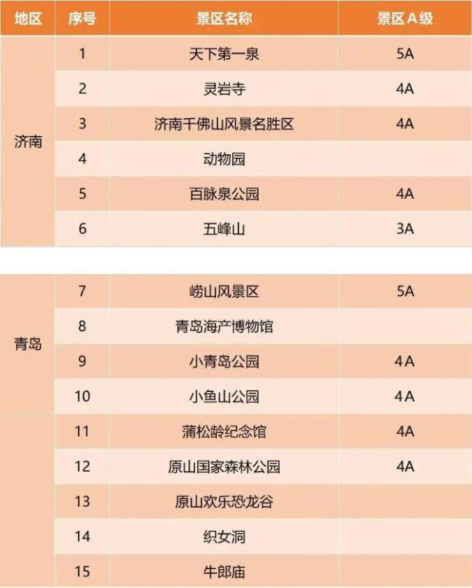 附:山东省降价国有景区名单及原门票价格