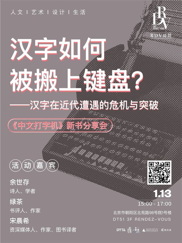 自秦始皇书同文运动后,2000多年里历代王朝几番浮沉,作为中华文明载体的汉字却生生不息,延续至今。但其实汉字在近代一度面临被废绝的生存危机。汉字,如何艰难穿越机械时代,最终走进数字时代?这段艰难却重要的旅程之始,落在“怎么把数量庞大的汉字搬到键盘上”。1月13日下午,我们特别邀请到诗人、学者余世存,书评人、作家绿茶,资深媒体人、作家、图书译者宋晨希做客DT51,就屡获好评的《中文打字机》,谈谈汉字在近代遭遇的危机与突破,聊聊汉字的现代化之路。