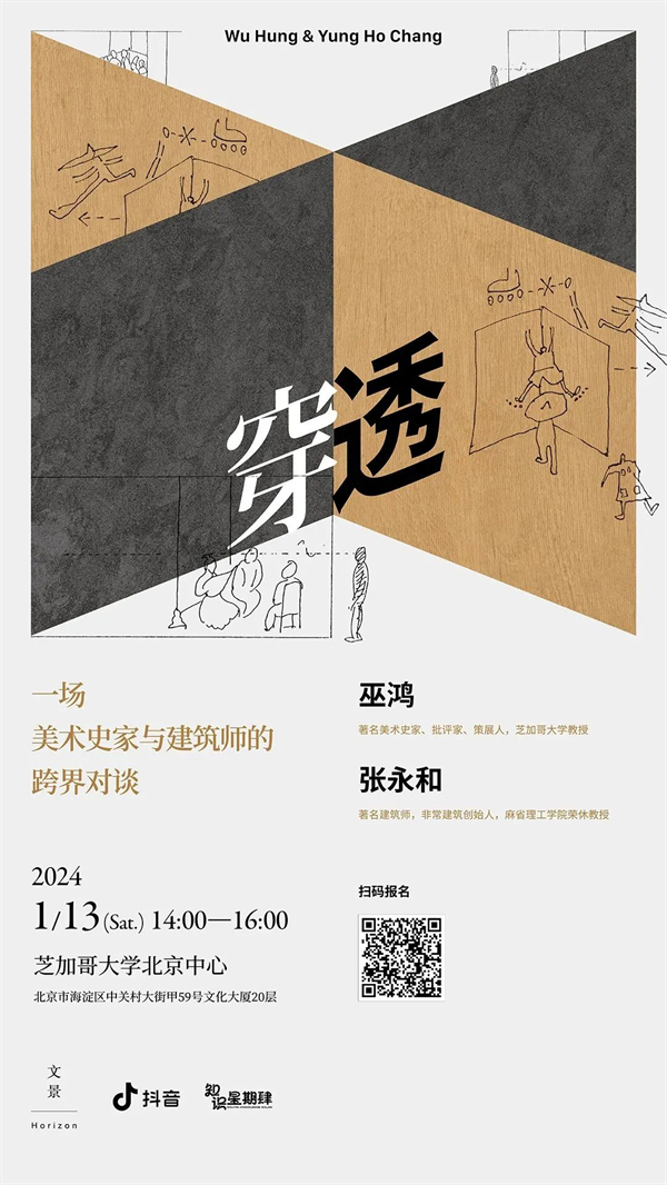 从武梁祠、“空间”的美术史,到空间的敦煌、绘画中的“女性空间”,在美术史家巫鸿的研究中,“空间”是一条绵延的线索,牵连出美术史研究的诸多新面向。从《作文本》《图画本》中的纸上建造,到一次次建筑实践的落地,以“空间”为业的建筑师张永和,一边制图一边看/画画,从对透视之法的研究中得到颇多启发与灵感。2024年伊始,世纪文景联合抖音《知识星期肆》,策划了一场美术史家巫鸿与建筑师张永和的跨界对谈,两位重磅嘉宾将从各自专业领域出发,围绕“穿透”这一主题展开分享与对话,以期碰撞出理解空间、材质、媒材的更多可能。