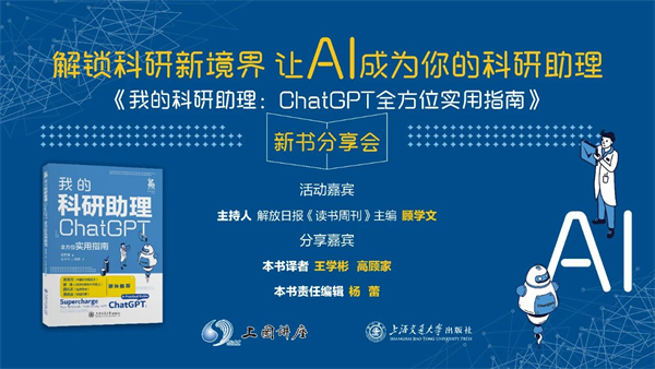 上海|解锁科研新境界 让AI成为你的科研助理——《我的科研助理:ChatGPT全方位使用指南》新书分享会