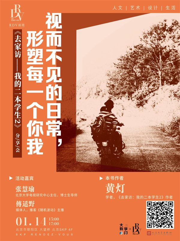 “家庭教育”和“社会教育”,是否蕴含了一直被我们疏忽和漠视的地方?那些我们早已视而不见的日常,湮没在个人化话语中的定见,是否真的失去了讨论空间?1月14日下午,我们特别邀请北京大学电视研究中心主任、博士生导师张慧瑜,媒体人、播客《随机波动》主播傅适野,以及中山大学文学博士黄灯做客SKP,分享新书《去家访——我的二本学生2》。