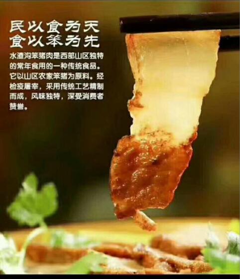 水渣沟腌肉是西柏坡老区独特常年食用的一种传统腌制食品,它以山区农家笨猪为原料,经检疫屠宰,采用传统工艺精制而成,风味独特,纯手工腌制,其独特的饮食风味,深受大消费者的青睐。