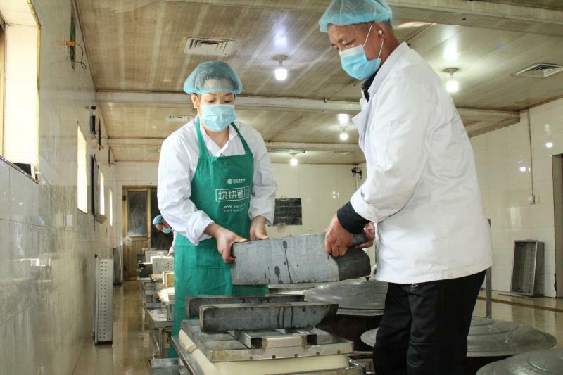 老味道的平山古月手工豆腐被农民的带头人商文军做成了产业,他聚集了古月镇优秀的豆腐师傅,修建了古月镇第一座占地2000平方米的规模化豆腐手工作坊,从黄豆、水质这样最基本的原材料,到泡豆、磨豆、过滤、煮浆等十道工序,200多条操作要领,一点一点认真细致掌握和把控,每一个细节都坚持做到最好。
