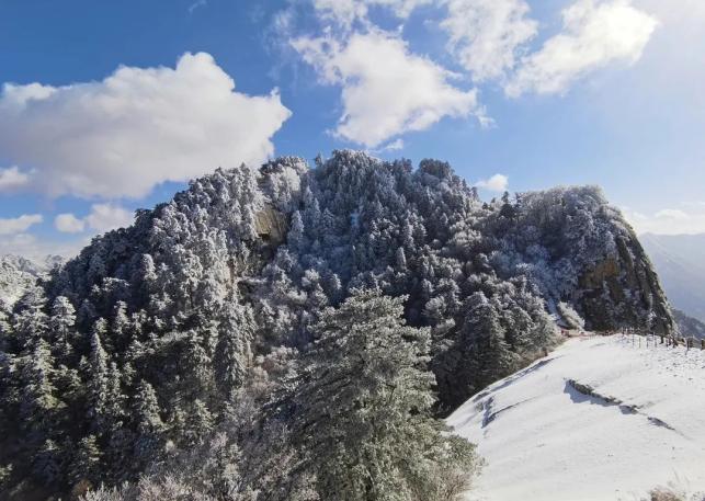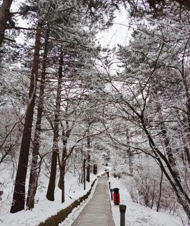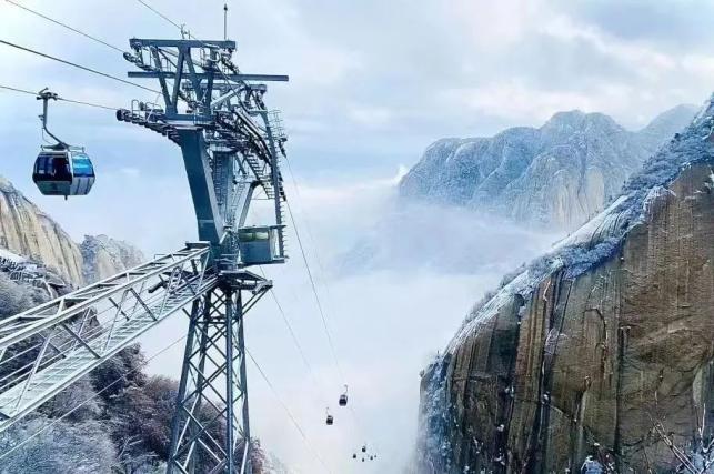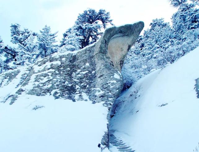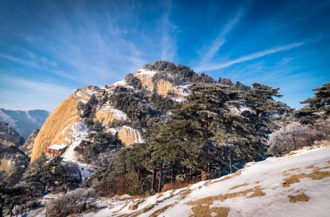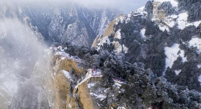 每年12月至次年3月是华山的雪季,整个山体被白雪覆盖,树木、岩石、屋舍都披上一层晶莹的薄衣,走进华山仿佛走进了一个纯白的圣洁之地,白色的花岗岩、白色的雪花、白色的树木……在华山,白色也是如此的浪漫唯美。