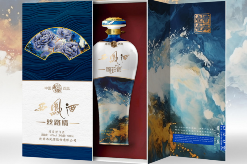 国花瓷西凤酒丝路情作为国花瓷西凤酒战略性产品,是以丝路文化为底蕴,精选温润蓝色为主色调。瓶身器型依旧为经典梅瓶,不过在线条设计上做了改进,更显含蓄雅致,瓶身上点缀国画牡丹,雍容华贵,彰显开放、包容、创新之精神。