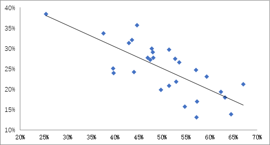 从国内各省份来看,也明显存在城镇化水平高的省份生育率相对较低。比如用0-14岁人口与15-64岁的比例来代表各省份过去十年的生育率水平,其与各省过去十年的平均城镇化率呈现明显负相关(见图表)。可见,即使出台鼓励生育的政策,生育率提升相对明显的也一定是农村和小城镇地区。因此,加强农村和小城镇的教育资源,做好教育公平对提升整体“成才率”非常重要。