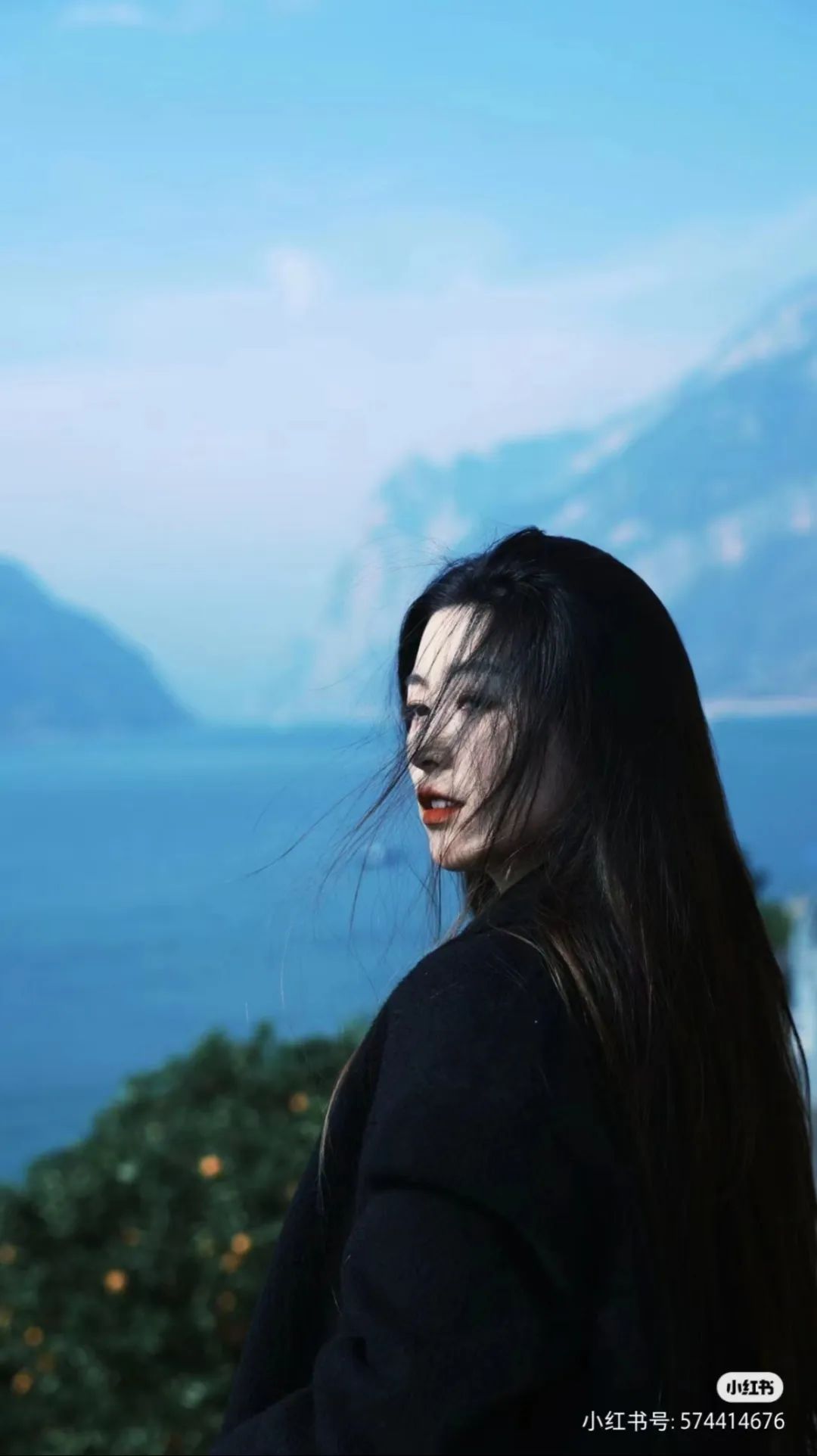当然,我们也可以以连绵的山脉和粼粼江面作为背景,将人物放在画面1/3的位置,颔首观花、开怀大笑……流露出一种不经意间入“画”的动态美。