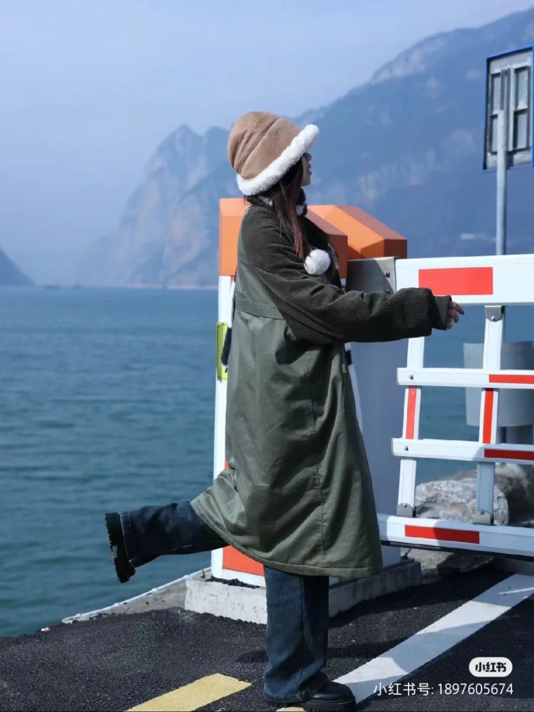 我们可以让人物站在江边,侧面对镜头。摄影师可以切换手机焦段为2x或5x,这样就能以江面作为人物背景了。模特做一些低头看花或者眺望远方等姿势动作都是比较自然的哦!