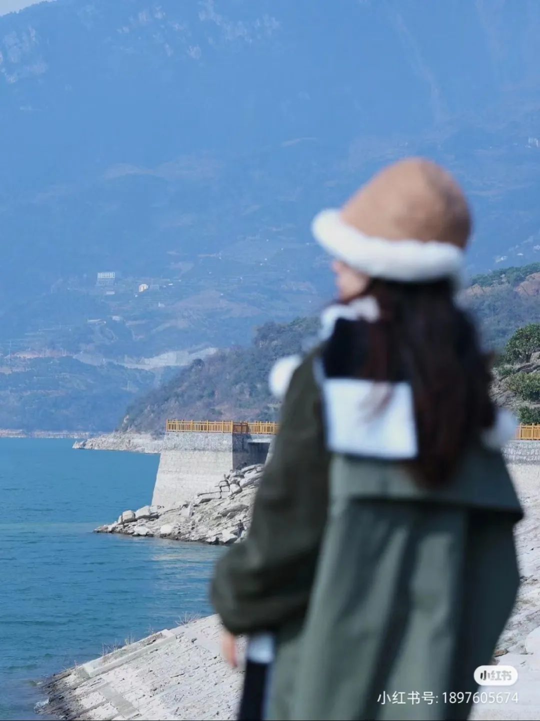 在拍摄过程中,可以多使用道具,比如让人物抱着花束面朝江面,背对镜头。摄影师靠近人物,将手机对焦点对焦在江水,这样人物和花束都会变得虚化,增加画面意境感。