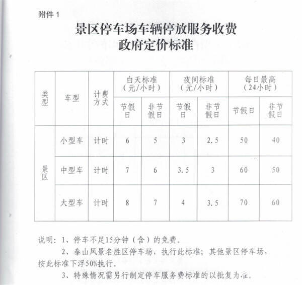 景区范围内停车场收费标准统一,分别是:
