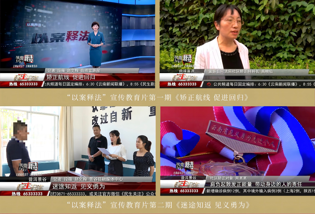 原创录制《以案释法》100期、教育微视频100个、音频产品100个,建成省级在线教育资源库,通过“在矫通”APP精准推送至每一名社区矫正对象开展“线上+线下”的教育学习;立足云南社区矫正的实际,结合全省“普法强基补短板”专项行动,开展“法治宣传固边防”专项活动和社区矫正对象订单式教育矫治工作,实施因人施教,提高矫正质量。