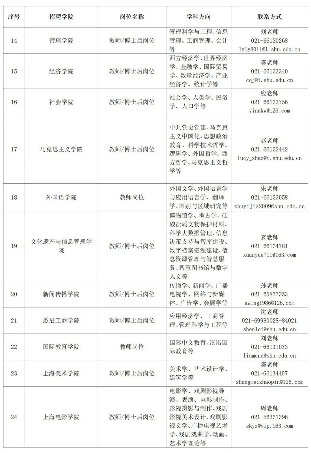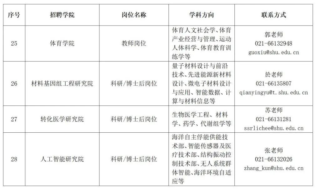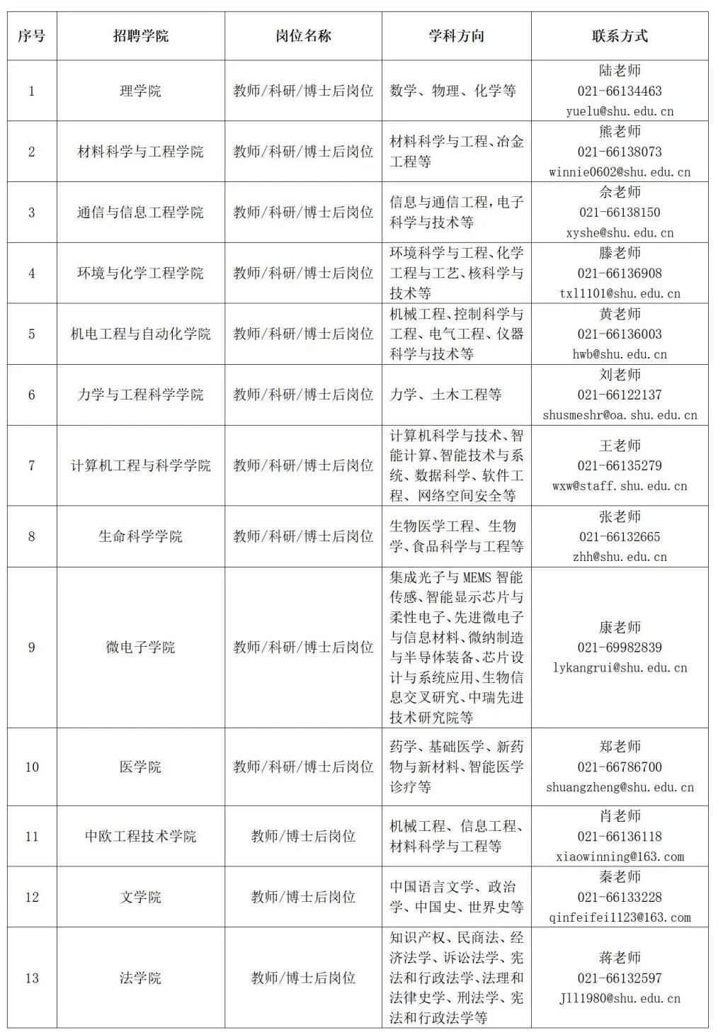 6.具体岗位要求详见上海大学招聘网站(https://jobs.shu.edu.cn)。