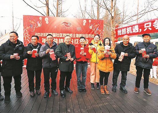 “首次分红,必须要有仪式感,老百姓只有拿到实惠,才是最踏实最高兴的。”现场最受瞩目的就是红包,以户为单位的508个红包,早已被社区工作人员装好,扎成捆,整齐码在铺着红丝绒的桌子上,红底黄字“491700元” 格外显眼。