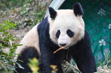 这是1月18日在重庆永川乐和乐都动物主题乐园熊猫馆拍摄的大熊猫“爱莲”。当日,来自中国大熊猫保护研究中心的四只大熊猫——“青花”“青露”“巧月”“爱莲”在重庆永川乐和乐都动物主题乐园熊猫馆正式与游客见面。