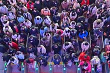 1月19日,工人操控机械在哈尔滨冰雪大世界存冰场码放冰垛(无人机照片)。新华社记者 谢剑飞 摄 1月19日,在哈尔滨市松北区,运冰车将切割好的冰块运至哈尔滨冰雪大世界存冰场(无人机照片)。
